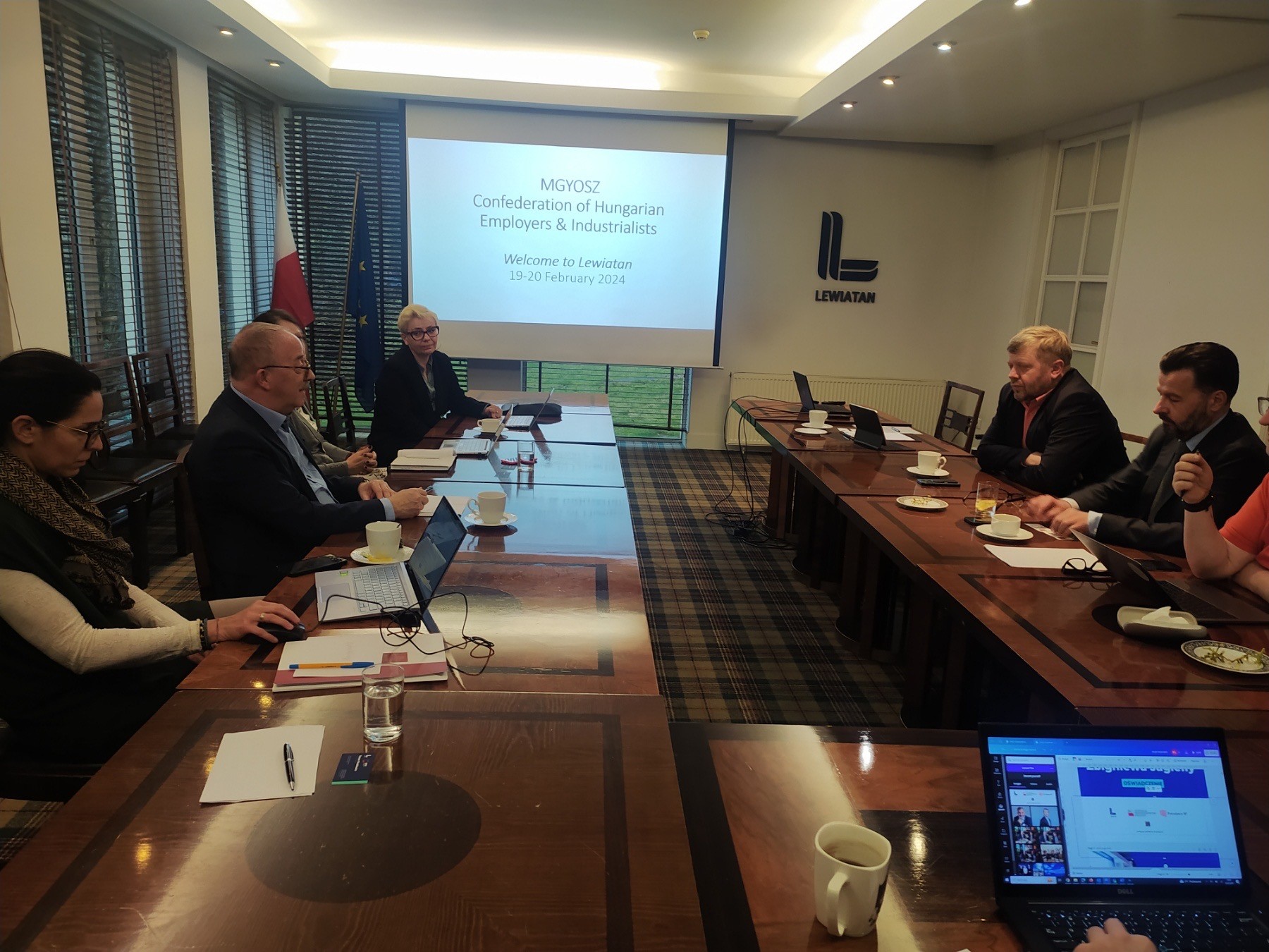 Az MGYOSZ delegációja a múlt héten ellátogatott lengyel testvérszervezetéhez a Lewiatan-hoz. A varsói székhelyű munkaadói szövetségnél egyeztetést folytattunk a Lewiatan elnökével, Macej Witucki-val, Jacek Krawczyk-kal a szervezet alelnökével, Andrzej Rudka-val, a Lewiatan nemzetközi kapcsolatok igazgatójával. A kétnapos látogatás során több témában is tapasztalatot cserélhettünk a lengyel szakértőkkel. Szó esett az energiaágazatról, képzésről, és természetesen a szociális párbeszéd helyzetéről. Kölcsönösen kifejeztük, hogy a lehető legszorosabban szeretnénk együttműködni a két ország közelgő, egymást követő úniós elnöksége kapcsán és sok más szövetségeinket érintő ügyben.